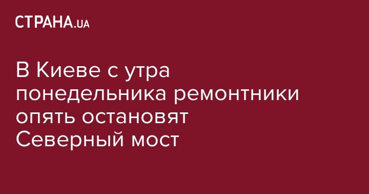 По причине ремонтных работ на Северном мосту 18 ноября с 8:00 до 17:00 будет частично ограничено движение. Об этом сообщает пресс-служба Киевского городской государственной администрации со ссылкой на "Киевавтодор".