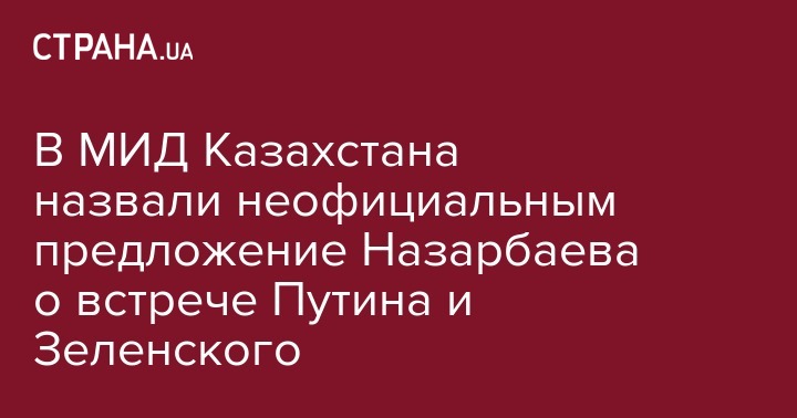 МИД Казахстана прокомментировал предложение бывшего президента Казахстана Нурсултана Назарбаева организовать в республике встречу Владимира Путина и Владимира Зеленского. Как считают в МИДе, эта идея была озвучена господином Назарбаевым в качестве темы для обсуждения на уровне экспертов.