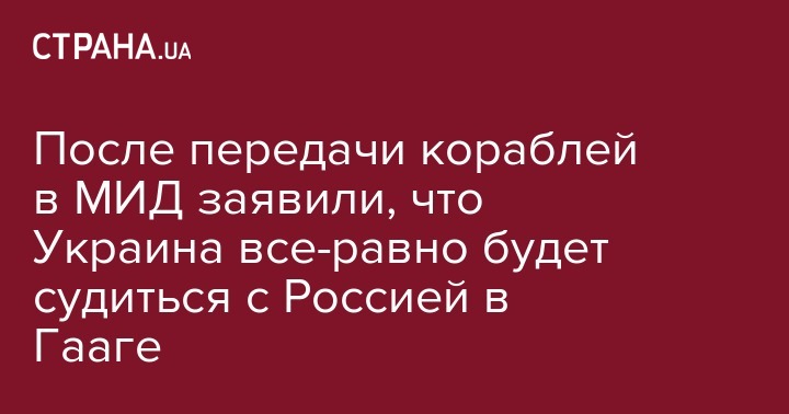 Несмотря на то, что сегодня Россия передала Украине захваченные год назад украинские корабли "Бердянск", "Никополь" и "Яны Капу" в МИД заявили, что будут судиться с Москвой в Международном суде. Об этом в соцсети сообщила заместитель министра иностранных дел по вопросам европейской интеграции Елена Зеркаль.