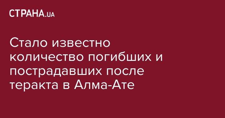 Стало известно количество погибших и пострадавших после теракта в Алма-Ате