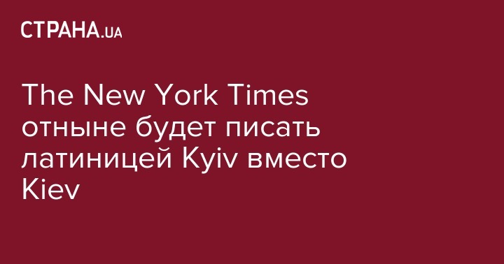 Авторитетная американская газета The New York Times тоже меняет латинское написание столицы Украины. Теперь в редакции приняли решение писать "Kyiv" вместо "Kiev".