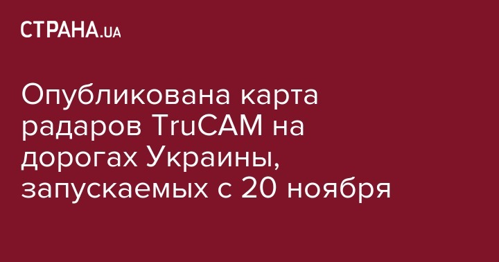 Опубликована карта радаров TruCAM на дорогах Украины, запускаемых с 20 ноября