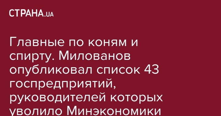 Главные по коням и спирту. Милованов опубликовал список 43 госпредприятий, руководителей которых уволило Минэкономики