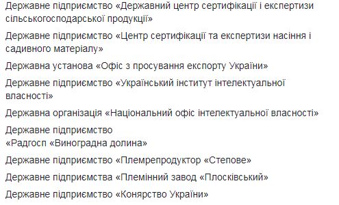 Министр развития экономики, торговли и сельского хозяйства Тимофей Милованов опубликовал перечень госпредприятий, подконтрольных его ведомству, руководители которых были уволены. Список Милованов опубликовал в Facebook.