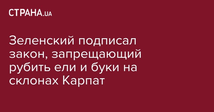 Президент Владимир Зеленский подписал закон, который запрещает сплошные вырубки елово-буковых лесов на склонах Карпат. Об этом сообщается на сайте главы государства.