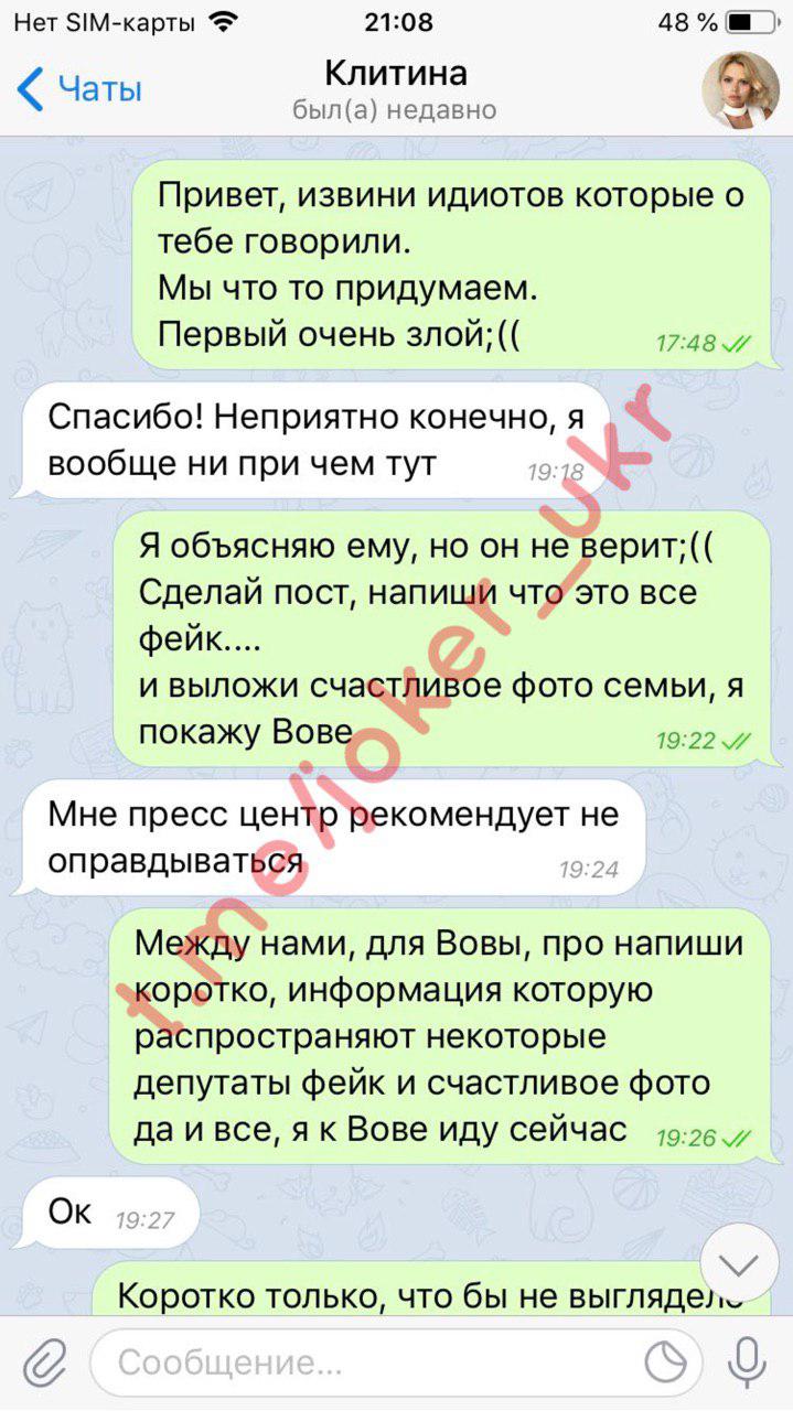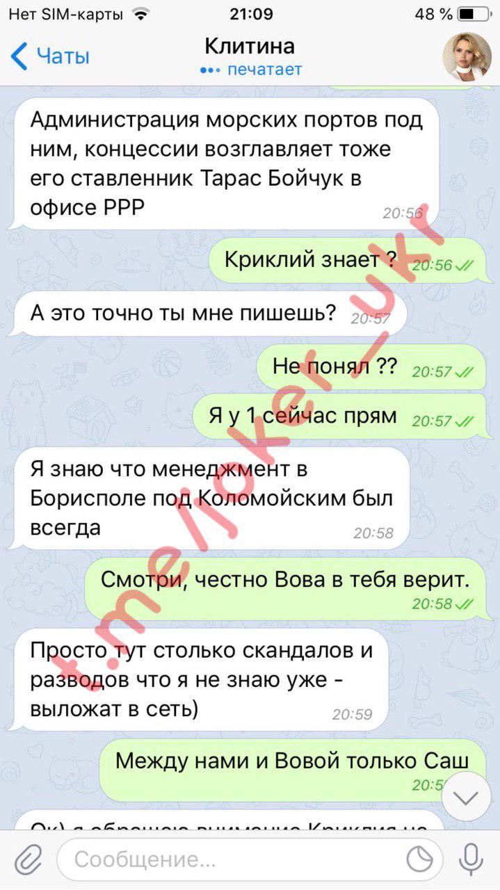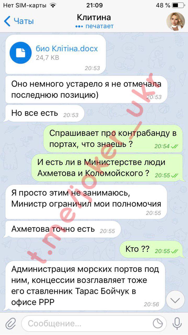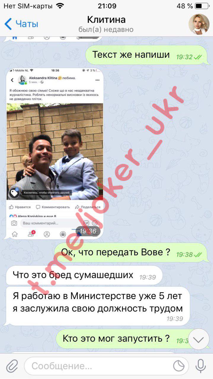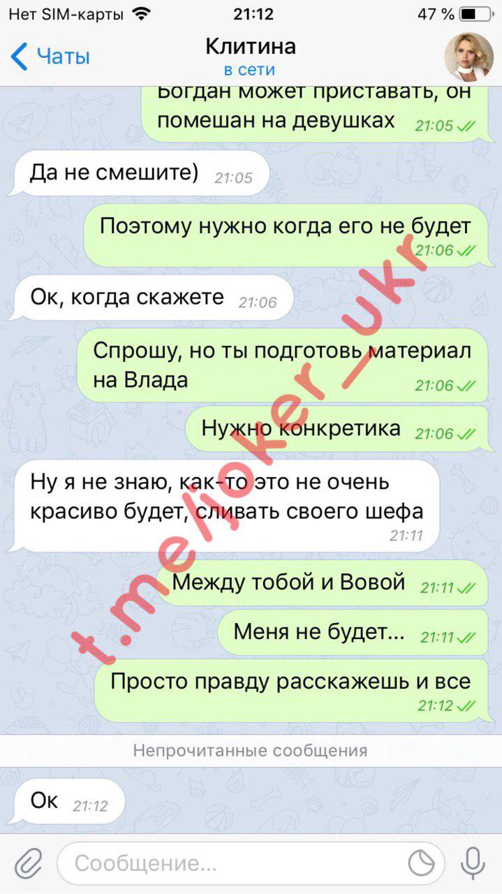 Кроме того, во время переписки Клитина дала понять, что хотела бы получить должность министра транспорта и инфраструктуры. На вопрос от Джокера, "потянула" бы она министерство, Клитина ответила "потянула бы".