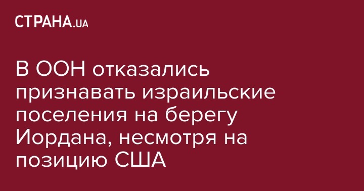 "Мы продолжаем придерживаться давней позиции ООН о том, что израильские поселения нарушают международное право… Изменение политической позиции одного государства не меняет существующее международное право и его толкование Международным судом и Советом безопасности", - сказал Колвилл.