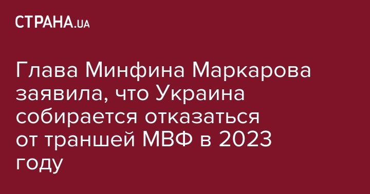Глава Минфина Маркарова заявила, что Украина собирается отказаться от траншей МВФ в 2023 году