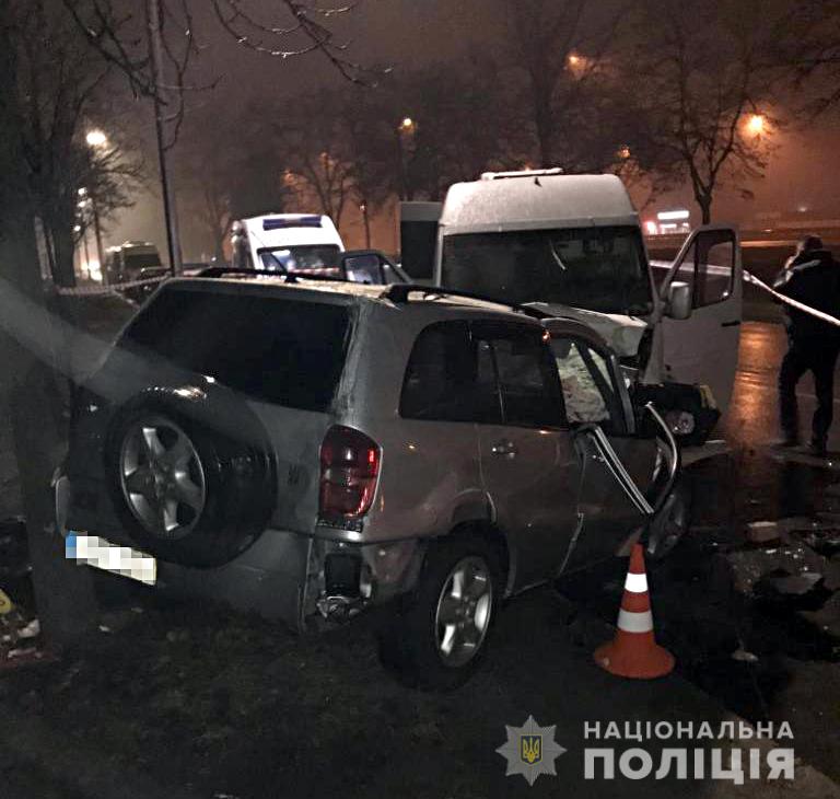 По данным правоохранителей, водитель, управляя автомобилем Toyota RAV4 двигался по проезжей части на улице Зодчих. Не справившись с управлением, он выехал на встречную полосу, где столкнулся с микроавтобусом, сообщается на сайте Нацполиции Киева