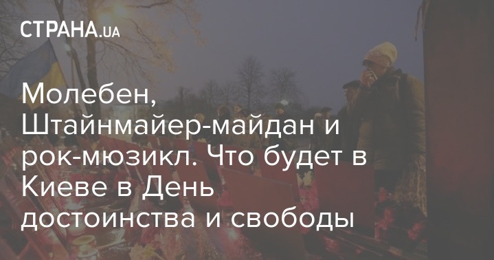 В 18:00 – молебен за Небесную Сотню, зажжение лампад возле часовни по адресу: аллея Героев Небесной Сотни, 6. В мероприятии будут участвовать первые лица государства. Молебен проведут священнослужители Церкви Архистратига Михаила и новомучеников украинского народа УГКЦ, которая расположена на этой же улице.