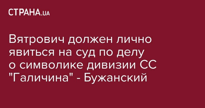 "По какой то неизвестной науке причине, Вятрович в суд ходить не желал, присылая вместо себя адвоката, имел право. До тех пор, пока суд не обязал его и истца явиться на заседание лично, 4 декабря 2019 года. Поверьте, это будет очень интересное заседание, если Вятрович туда придет, по крайней мере, у него есть уникальный шанс стать первым украинцем, защищающим символику эсэсовской дивизии в суде. И если не придет, это тоже будет очень символично. К 75-летию Победы, я бы сказал", - пишет Бужанский.