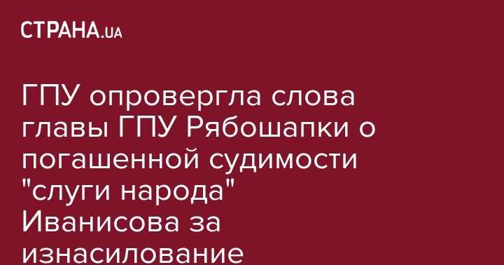 ГПУ опровергла слова главы ГПУ Рябошапки о погашенной судимости "слуги народа" Иванисова за изнасилование несовершеннолетней