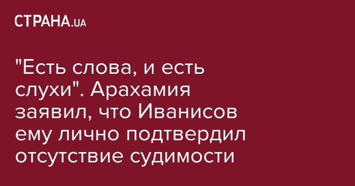 "Он опровергал (судимость - Ред.). Он говорит, что не было у него судимости. Это его слова. Есть его слова и есть слухи в СМИ сейчас. Ни одного документа... Есть Рябошапка (генпрокурор - Ред.), который подтвердил или чуть опроверг, потому что я посмотрел прямую речь Рябошапки и он говорит: "Не мы делали эту проверку, но она подтвердилась". У меня нет другого подтверждения, я хочу одну бумагу от каждой стороны - от Иванисова, где органы скажут, что он не отбывал (наказание - Ред.), или от того, кто его обвиняет, где будет приговор", - заявил Арахамия.