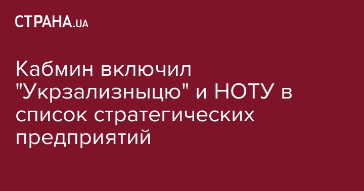 Кабмин включил "Укрзализныцю" и НОТУ в список стратегических предприятий