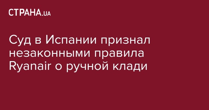 Хозяйственный суд в Испании признал требования бюджетной авиакомпании Ryanair платить за ручную кладь незаконными. Об этом сообщает BBC.