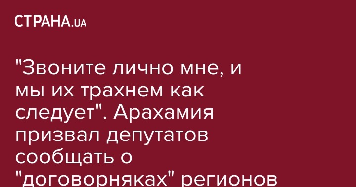 "Я приезжаю в Николаев, встречаюсь у главы ОГА на совещании с силовиками и говорю: если кто-то вам из Киева будет звонить и говорить, туда не ходи, это не делай, это не расследуют, звоните лично мне, и мы их трахнем как следует... Эта феодальная страна, где местные князьки говорят, мы в Киеве договорились, занесли кому-то и нас нельзя трогать – этого уже не будет. Поэтому я говорю, все депутаты, которые ездят в регионы, должны эту информацию собирать, приезжать и докладывать. Даже если это не их полномочия, пусть пишут запросы в правоохранительные органы, - сказал Арахамия.