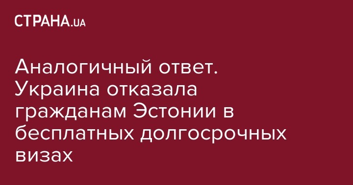 Аналогичный ответ. Украина отказала гражданам Эстонии в бесплатных долгосрочных визах