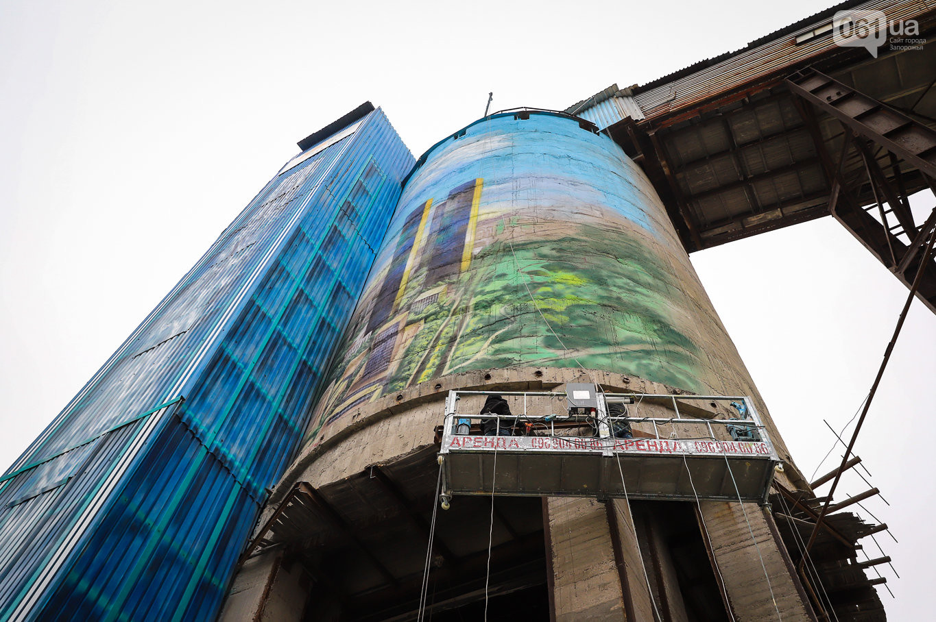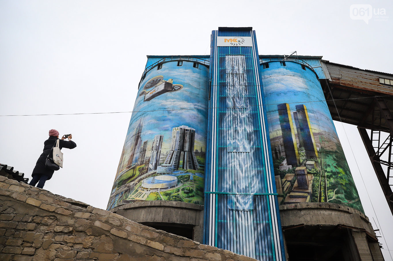 В Запорожье на территории Мокрянского каменного карьера создали крупнейший мурал Украины под названием "Город будущего", над которым три художника трудились около месяц, потратив 20 кг краски. Картина разместилась на бетонных бочках высотой 32 метра и диаметром 11,5 метров, сообщает 061.ua.