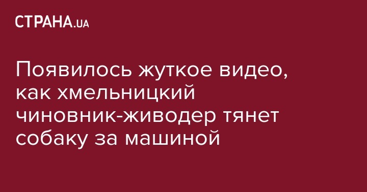 Защитники животных опубликовали видео, на котором автомобиль директора Государственного архива Хмельницкой области Владимира Байдича тащит на цепи привязанную собаку. Соответствующий видеоролик размещен на странице в Facebook организации UAnimals.