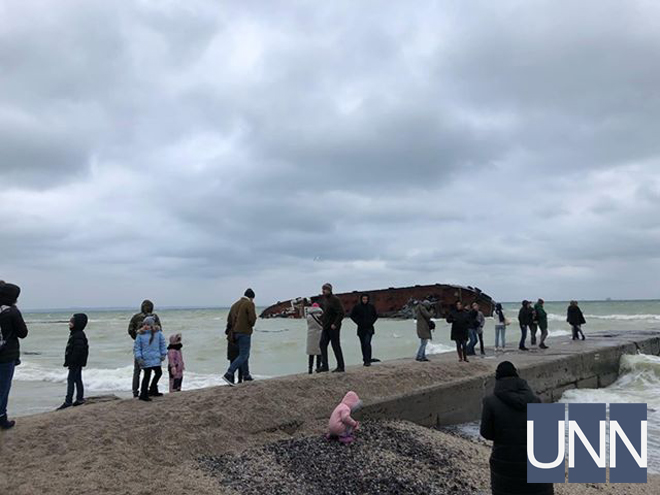 В Одессе на затонувший танкер "Делфи", который потерпел аварию возле пляжа "Ланжерон" на фоне шторма, пришли посмотреть толпа местных жителей. Об этом сообщает УНН.