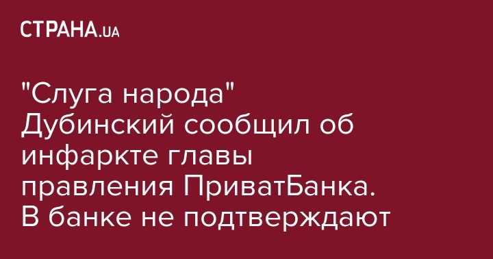 "Слуга народа" Дубинский сообщил об инфаркте главы правления ПриватБанка. В банке не подтверждают