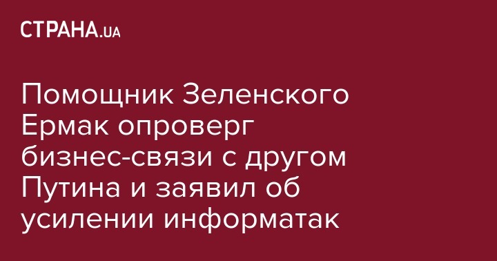 Помощник Зеленского Ермак опроверг бизнес-связи с другом Путина и заявил об усилении информатак