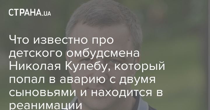 Уполномоченный Украины по правам ребенка Николай Кулеба попал в ДТП и находится в тяжелом состоянии. С ним пострадали двое его сыновей - Тимофей и Елисей. Что о нем известно?