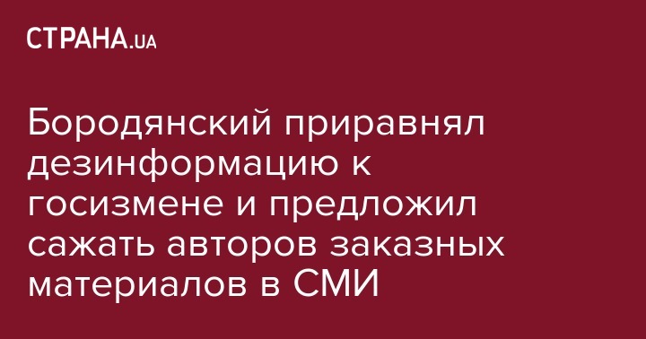 Министр культуры, молодежи и спорта Владимир Бородянский, который не так давно подал несколько скандальных инициатив по регулированию СМИ, считает вполне оправданной мерой введение уголовной ответственности для журналистов, которые за деньги занимаются подготовкой заказных материалов. Об этом он рассказал в интервью "Новому времени".