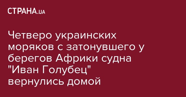 Государственный секретарь Министерства иностранных дел Украины Андрей Заяц сообщил, что четверо украинских моряков с затонувшего в июле у берегов Мавритании рыболовецкого траулера "Иван Голубец" вернулись домой. Об этом он написал в своем Twitter.