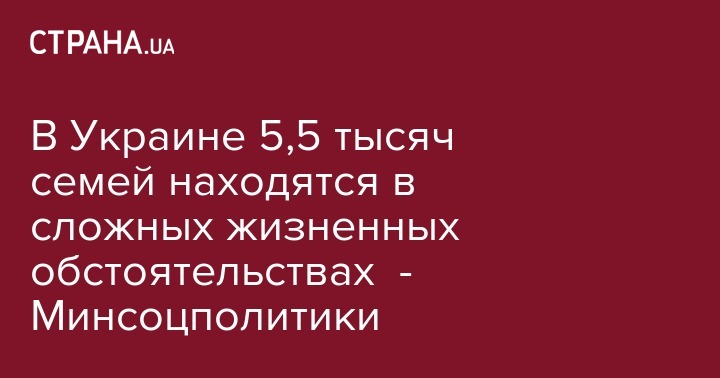 В Украине в центрах социальных служб для семьи, детей и молодежи насчитывается более 5,5 тысяч семей, находящихся в сложных жизненных обстоятельствах. Об этом сообщил на брифинге по противодействию и предотвращению домашнего насилия заместитель министра социальной политики по вопросам европейской интеграции Сергей Нежинский, передает корреспондент УНН.