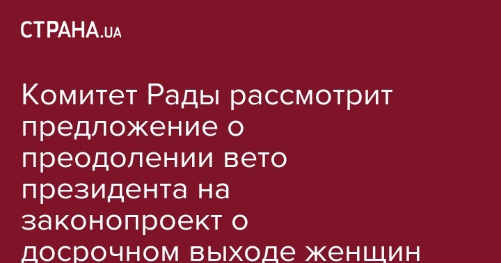 Комитет Рады рассмотрит предложение о преодолении вето президента на законопроект о досрочном выходе женщин на пенсию