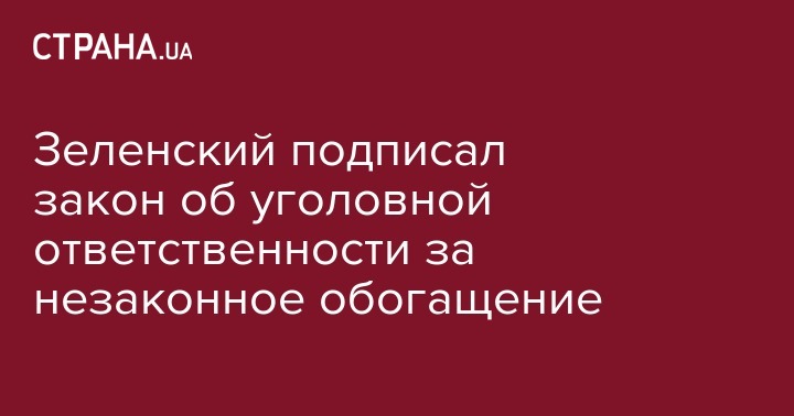 В понедельник, 25 ноября, глава Украины Владимир Зеленский подписал закон "О внесении изменений в некоторые законодательные акты Украины относительно конфискации незаконных активов лиц, уполномоченных на выполнение функций государства или местного самоуправления, и наказание за приобретение таких активов" № 263-ІХ.