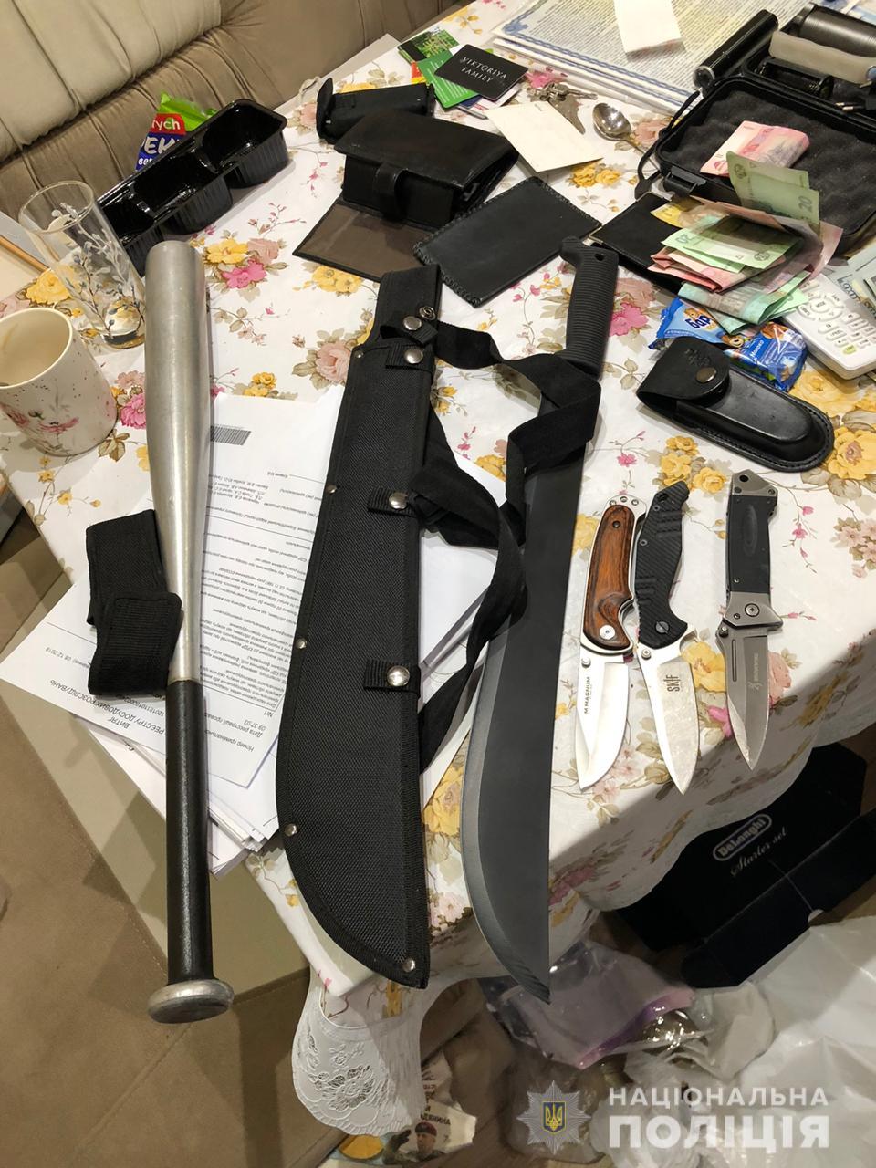 Нападавшие были задержаны по месту жительства. Во время обысков в помещениях злоумышленников работники полиции обнаружили и изъяли различные ножи, металлическую биту и даже мачете.