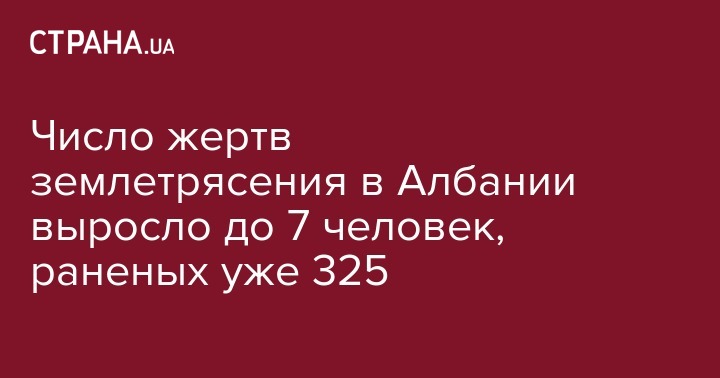 По последним данным, в результате мощного землетрясения в Албании, которое потрясло страну, утром 26 ноября, погибли 7 человек и пострадали 325. Об этом сообщает албанское издание Faktor.