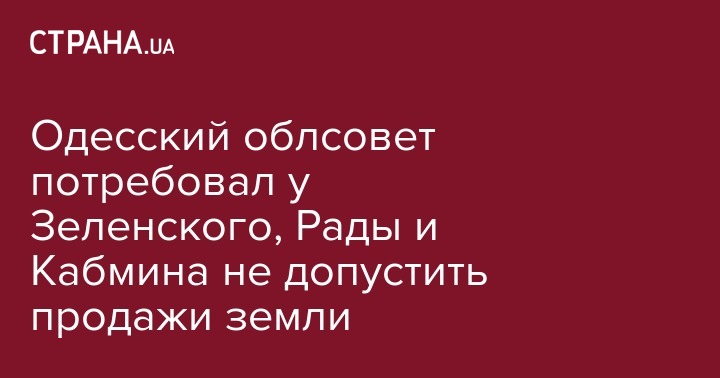Во время 29-й внеочередной сессии Одесского областного совета, состоявшейся 26 ноября, депутаты поддержали обращение к президенту Украины, Верховной Раде и Кабинету министров о недопущении преждевременного открытия рынка земли. Об этом сообщается на сайте Одесского облсовета.