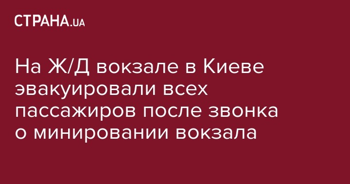 Все пассажиры и сотрудники эвакуированы из здания Центрального железнодорожного вокзала в Киеве (вокзал станции "Киев-Пассажирский") во вторник после поступившего анонимного сообщения о минировании. Об этом сообщается на странице "Укрзализныци" в Facebook.