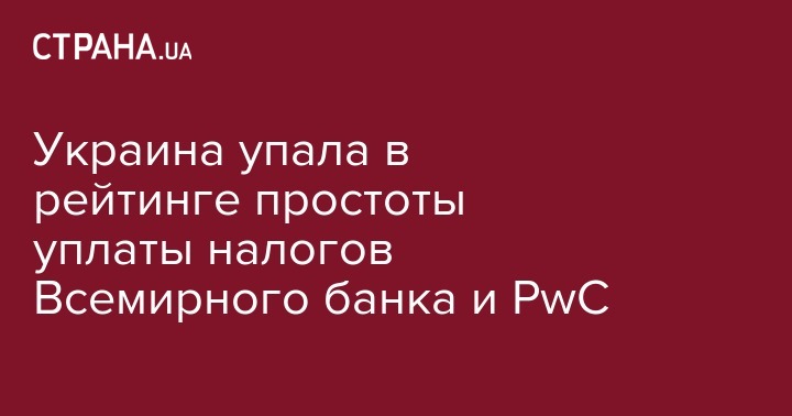 Украина упала в рейтинге простоты уплаты налогов Всемирного банка и PwC