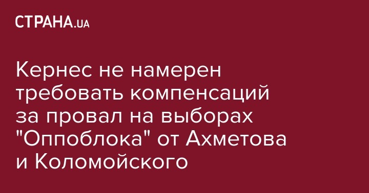 На вопрос о том, предъявлял ли он потом претензии Коломойскому и Ахметову, которые курировали Оппоблок, за провал партии на выборах, Кернес ответил: "Нет. Я обеспеченный человек. Как вы можете мне такие вопросы задавать? Какие компенсации?".