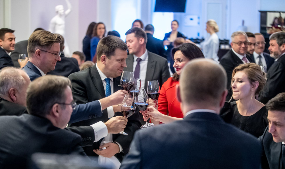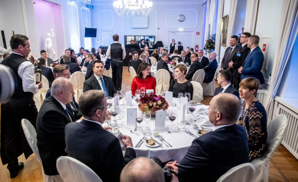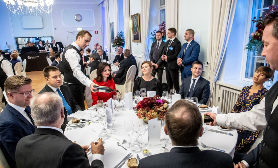 Вечером во вторник, 26 ноября, во время визита в Эстонию президент Украины Владимир Зеленский в Национальной опере "Эстония" побывал на торжественном ужине с президентом Эстонии Керсти Кальюлайд и ее супругом Рене Максимовским. Фото с ужина публикует издание Postimees.