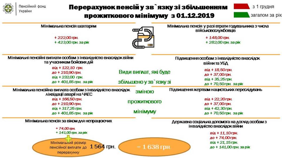 для лиц, утративших трудоспособность -1638 грн (было 1564 грн).
