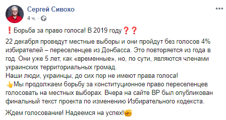 Скриншот: Facebook/Сергей Сивохо