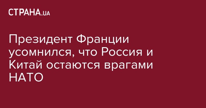 "Является ли наш враг сегодня Россией? Или Китай? Является ли целью НАТО назначить их врагами? Я не верю в это. Наш общий враг сегодня в НАТО - это терроризм, который поразил каждую из наших стран", - заявил Макрон на совместной пресс-конференции в Париже вместе с генеральным секретарем НАТО Йенсом Столтенбергом.