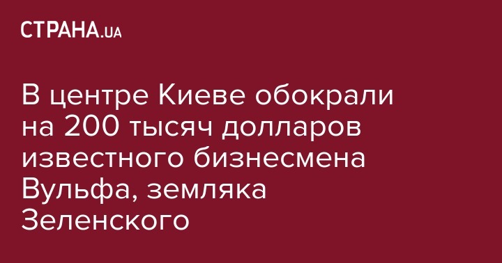 В центре Киеве обокрали на 200 тысяч долларов известного бизнесмена Вульфа, земляка Зеленского