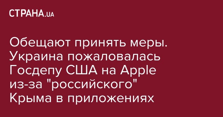 Украинские власти потребовали от Apple исправить некорректное обозначение Крыма как части РФ, а также обратили внимания Госдепа на сложившуюся ситуацию.