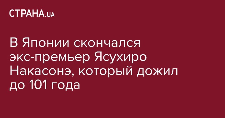 В Японии скончался бывший премьер-министр страны Ясухиро Накасонэ. Об этом сообщает телеканал NHK.