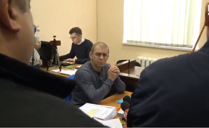 Пашинский сначала наблюдал за заседанием из бокса, куда его поместили, доставив из СИЗО, но по просьбе адвоката, ему разрешили выйти и сесть за стол рядом со своими защитниками.