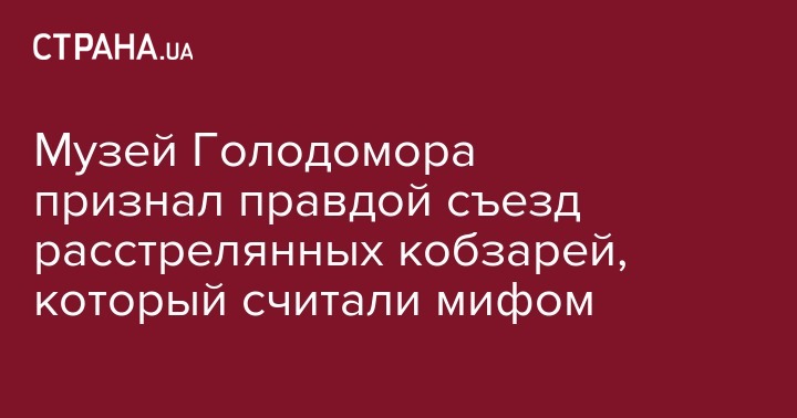 Национальный музей Голодомора-геноцида постановил, что "съезд расстрелянных кобзарей", который раньше академические историки считали мифом, является правдой. Об этом сообщил главный редактор портала "Українські новини" Денис Иванеско в Facebook.