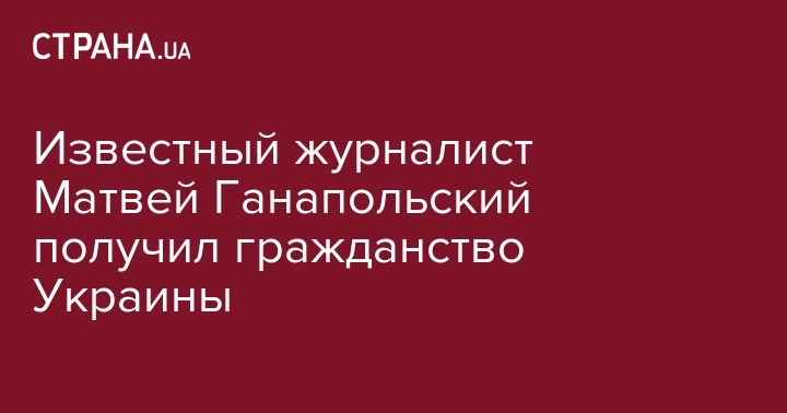 Популярный журналист и радиоведущий Матвей Ганапольский стал гражданином Украины. Об этом на своей странице в Facebook cообщил глава Администрации президента Борис Ложкин.