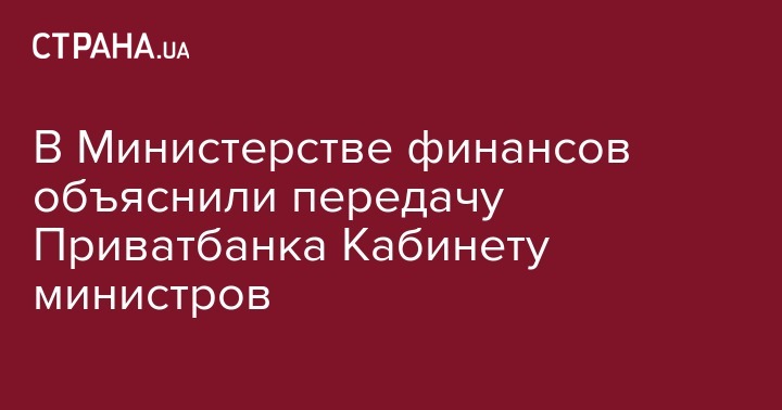 "Министерство финансов в соответствии с требованиями закона "О банках и банковской деятельности" передало полномочия по управлению ценными бумагами АО КБ "Приватбанк", учет которых ведется на счетах в ценных бумагах на имя государства, Кабинета Министров от 25 сентября 2019 года", - говорится в ответе на запрос агентства.