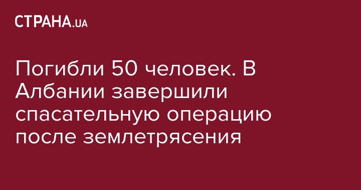 После ряда землетрясений в Албании, которые начались 26 ноября, спасатели только прекратили поиск погибших. Всего обнаружено 50 жертв - об этом сообщает агентство Associated Press.